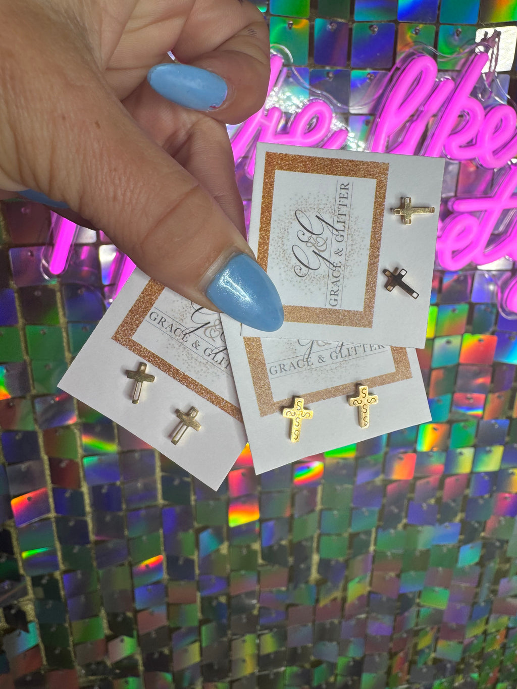 Gold Cross Studs