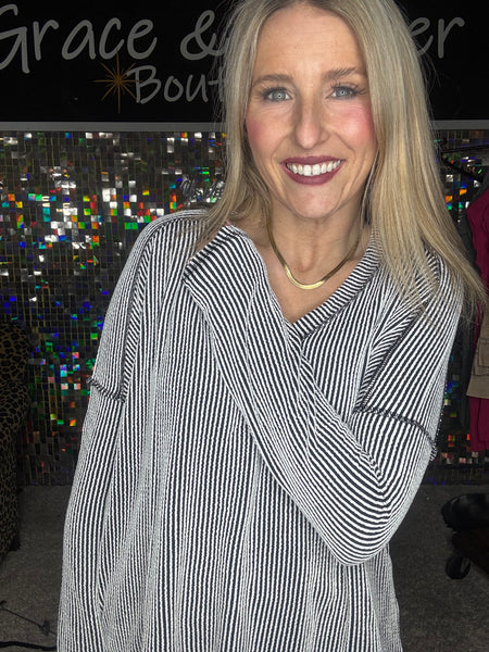 These rib tops are definitely my favorite. They are very stretchy and super Duper comfy. This color combo is black and white