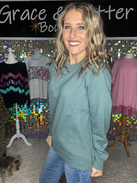 Zenana sweaters are amazing!!! This Jade sweater is a MUST for the fall season! Super soft inside. Has a relaxed fit. The sides have a cute ribbed texture, as well as around the collar line, the wrists/cuffs, and around the bottom.
